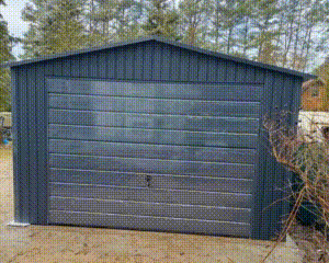 / Garaż blaszany 4x9m – Brama uchylna – 2x drzwi – antracyt – dach dwuspadowy TS986