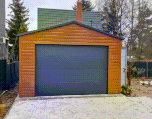 Garaż blaszany 5x6m – Brama segmentowa – drzwi – złoty dąb – drewnopodobny – antracyt – rynny – dach dwuspadowy TS930