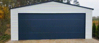 Garaż blaszany 6×5,8m – Brama segmentowa – drzwi – biały – antracyt – rynny – dach dwuspadowy TS872