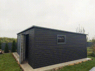 Garaż blaszany 7x6m – brama uchylna – drzwi – okno – czarny – antracyt – dach spad w tył TS876