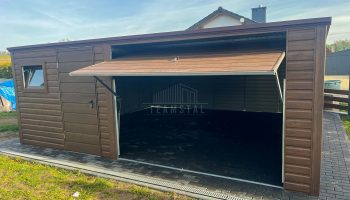 • szerokość : 5,5m • długość : 6m • dach : spad do tyłu kolor : ciemny brąz 8017 • brama uchylna 300×200 cm przetłoczenie T17 poziom kolor : ciemny orzech • okno uchylne PCV 80×60 kolor : ciemny orzech • drzwi 90×200 cm przetłoczenie T17 poziom kolor : ciemny orzech • Przetłoczenie ścian T7 poziom kolor : ciemny orzech • wysokość ściany przedniej : 213 cm • wysokość ściany tylnej : 190 cm • Konstrukcja – profil zamknięty ocynk • Zamek + Klucze • nity + wkręty w kolorze garażu • obróbki ścian • obróbki dachu Każdy produkt można dowolnie modyfikować aby dostosować do swoich indywidualnych potrzeb. Możliwa edycja :