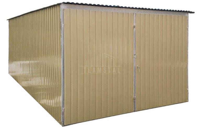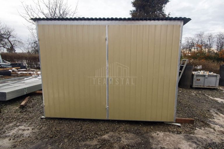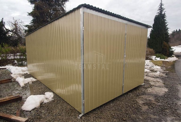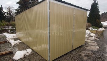 Garaż blaszany 3x5m – II Gatunek – Garaż blaszak na budowę wolnostojący – złoty – dach spad w tył TS1173